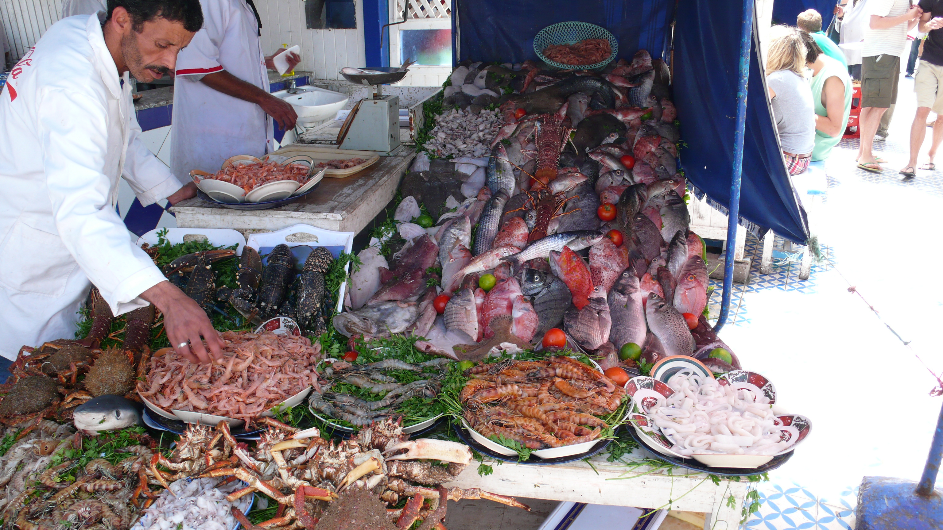 Ena taka mala posebnost tukaj so tudi ribje restavracije na pomolu, kjer imajo raztavljene ribe, rake, lignje, skampe… in si sam zberes kaj bi imel za kosilo ter potem izbrano vrzejo na zar. Ni najcenej mozna varjanta, je pa do sedaj najbolj okusna kar sva jih probala.