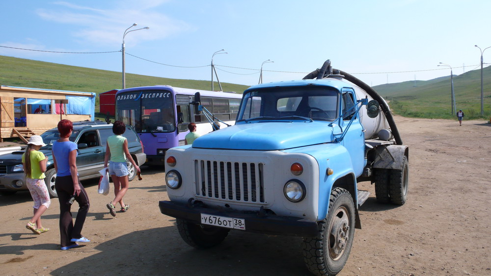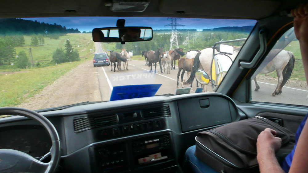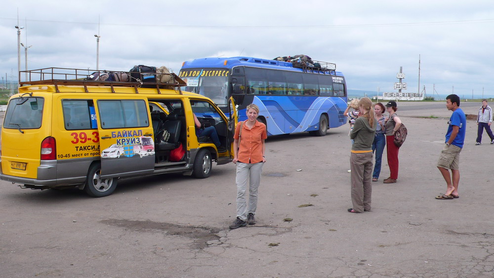 Dva dni nazaj, v cetrtek, sva se odpravila na pot na otok sredi bajkalskega jezera, kjer naj bi bila slikovita narava in `pravi` bajkal. Sprva se to ni zdelo kot nekaj posebnega, ampak sem danes na povratku razmisljal, da sva naredila nekaj takega kot da bi prisel v ljubljano na dopust in bi vmes skocil se v Split. In to se predno so zgradili avtocesto tja. Se vec, tukaj del poti poteka po makedamski cesti, ki je ful narebrana in trese kot hudic. Pot v eno stran vzame okol 8ur s tem da si natlacen v avtobusu ali pa v minibusu kot kaksna sardina z ruzakom na kolenih. Vsake tolk casa se se mora bus prebijati skozi credo krav, ki prosto tava po cesti. Pa naj bo to v blizini mesta ali na podezelju dalec od prve hise.