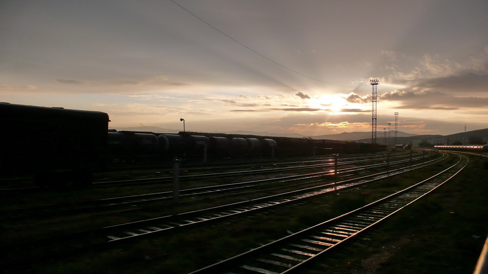 No pa sva tle… na koncu sveta. Sicer je bilo potovanje z vlakom prav zabavno. Irkutsk sva zapustila v lepem soncnem vremenu, polna lepih vtisov in ob 20:45 po lokalnem casu sva se ze pocasi cizala proti vzhodu/jugu.