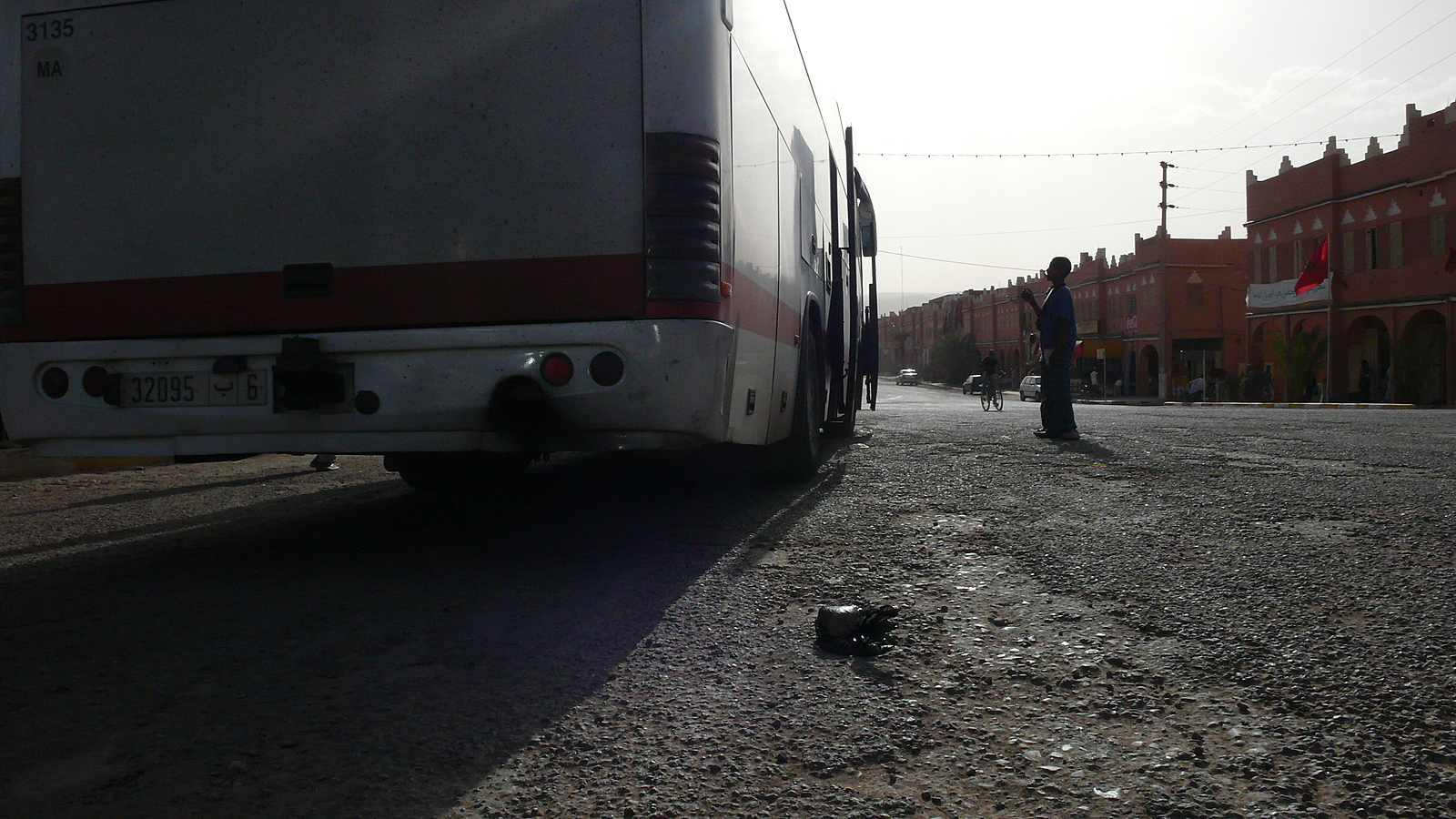 No potem sva bila ze na tem da si greva iskat prenocisce, ko naju razveselijo s podatkom da cez eno uro odpelje avtobus v Ouarzazate, ki nama je pomenil bistveno boljse izhodisce za naprej.