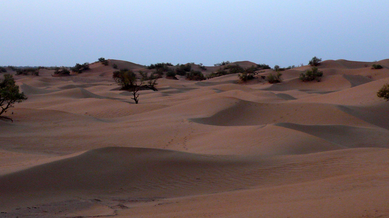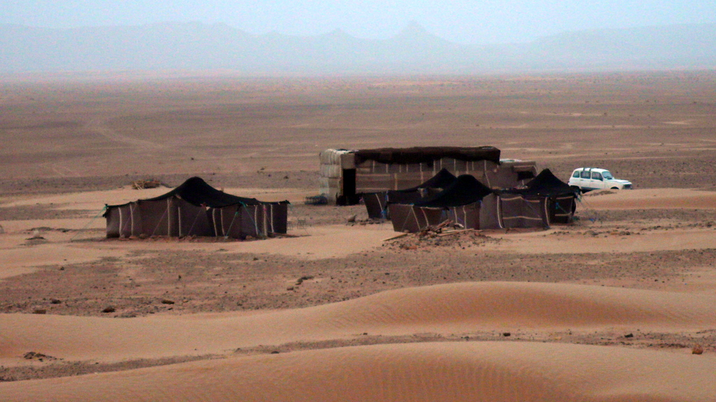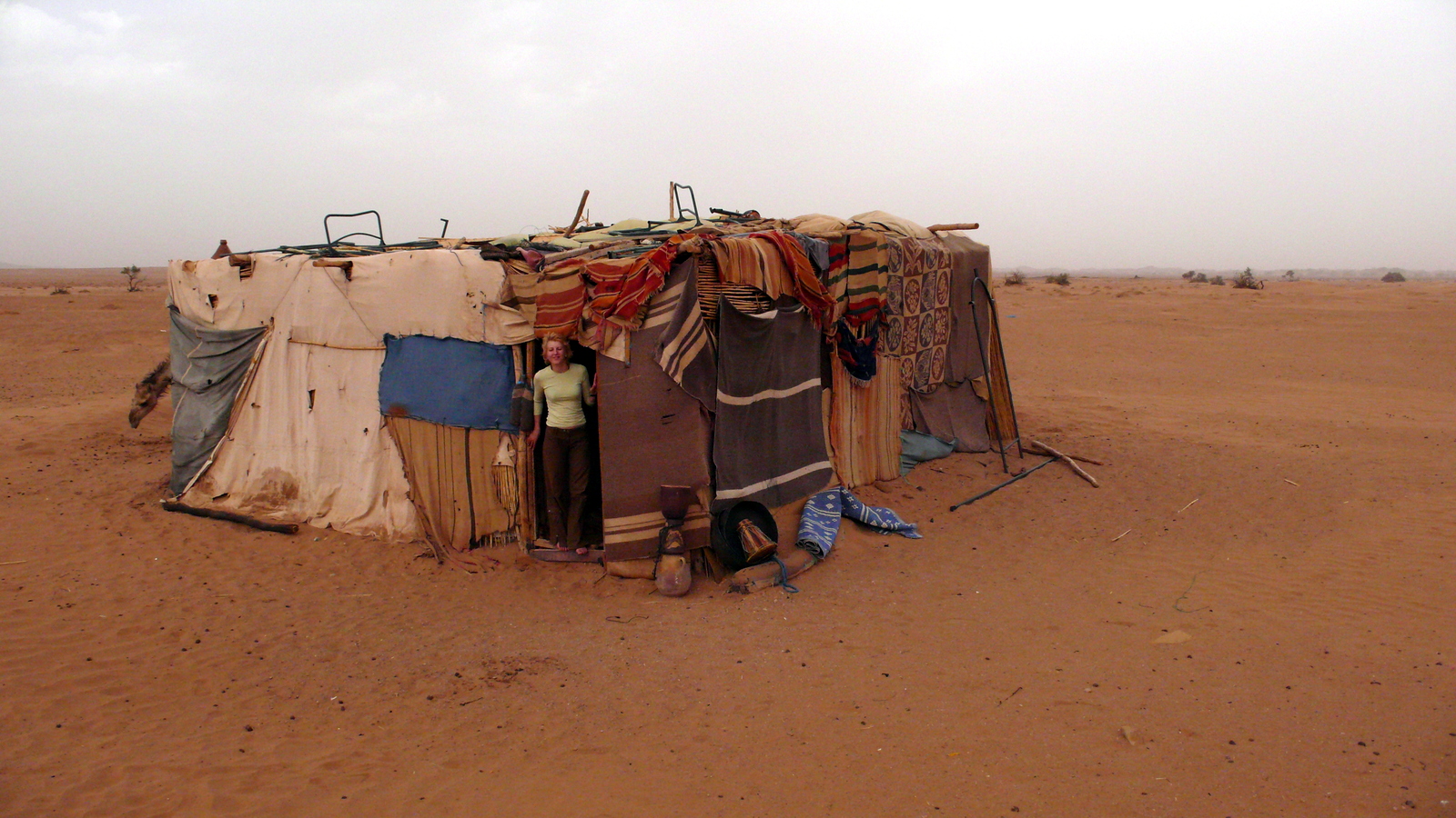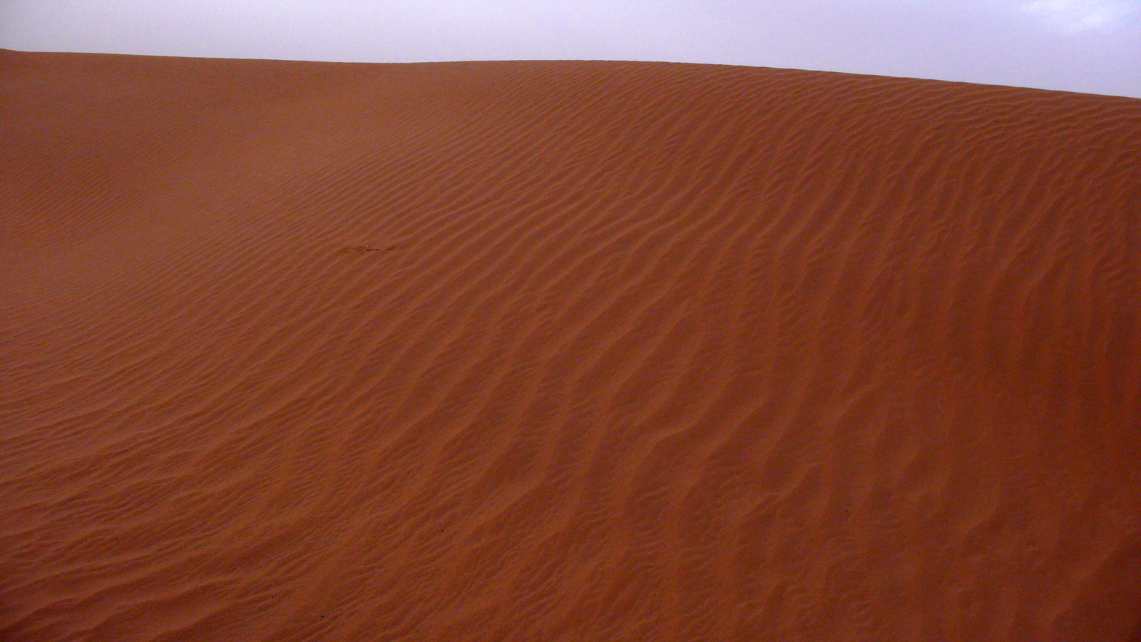 Po kosilu je bil na vrsti pocitek, vmes seveda se sladica, ki je tukaj obvezna in najvec krat v obliki sadja. Pot smo nameraval nadaljevat ze prej pa se je kar naenkrat pojavil pesceni vihar. Se sreca da nismo bili na odprtem takrat ker to je pa res grozno. Pesek ti zarije v vse pore. Mi smo pa samo sotor zaprl z vseh strani in poslusali bucanje, ki je bilo obcasno zelo glasno, da se nisi mogu niti pogovarjat. Potem se je malo umirilo, gremo ven in kar naenkrat – dez! Sicer ni prou velik scal sam kaplje so bile pa prava osvezitev.